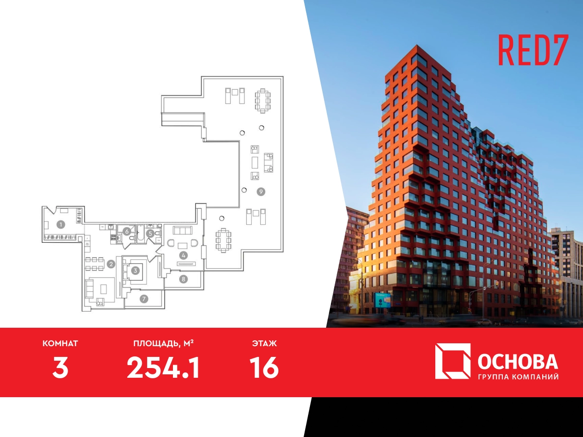 «RED7» — комплекс премиум-класса в самом сердце исторической Москвы, где каждая деталь продумана до мелочей. Продаются светлые 3-комнатные апартаменты площадью 254.10 кв. м, на 16 этаже престижного комплекса RED7, расположенного в самом центре Москвы, на первой линии Садового кольца. До Кремля всего 2,4 км. В шаговой доступности метро «Красные Ворота», Чистые пруды, уютные парки, театры, рестораны и все городские удобства. Расположение RED7 расположен в историческом центре Москвы, всего в 2,4 км от Кремля. Это новая достопримечательность, дополняющая облик города и ансамбль иконических зданий Садового кольца. Рядом с RED7 находятся бизнес-центры и офисы крупных компаний, штаб-квартиры банков, посольства и, безусловно, лучшие рестораны, магазины и места культурного досуга. Архитектура проекта Архитектурная концепция RED7 разработана всемирно известным голландским бюро MVRDV, с 1991 года создавшее множество выдающихся образцов прогрессивной архитектуры в Нидерландах, Франции, Дании, Испании, США, Японии, Китае и — впервые — в России, шаг за шагом пришло к форме RED7 как ответу русскому авангарду и сталинской архитектуре из далекого будущего. Этот дом не просто выдающееся архитектурное событие, он задает тон и формирует архитектурную ДНК Москвы будущего. Инфраструктура проекта RED7 — не просто апартаменты, это шаг в будущее жилых и общественных пространств. В комплексе будет создана «небесная гостиная» — клубное пространство для жителей со спортивной зоной, кинотеатром, коворкингом и местами для отдыха. Инфраструктура RED7 с открытым доступом включает премиальный фитнес-центр площадью 3,5 тысячи кв. м с полноразмерным бассейном длинной в 25м от, два ресторана от известных рестораторов, кафе, супермаркет премиального уровня, магазины и сопутствующие сервисы. Жители RED7 получают доступ ко всему набору сервисов дома, а общественные зоны дома создают идеальную атмосферу для общения, работы, развития и наслаждения жизнью. Технологии и материалы В апартаментах установлены полноразмерные панорамные окна в пол с шумоизоляцией от бельгийской компании Reynaers высотой до 4,5 метров. Особое внимание в RED7 уделяется микроклимату внутри дома: система вентиляции, очистки и кондиционирования воздуха в каждом апартаменте управляются удаленно через приложение iRED. В RED7 установлена система видеонаблюдения по всему комплексу, технология распознавания лиц и удаленный контроль охранных систем апартаментов. Паркинг Просторный 4-х уровневый паркинг расположен на подземных этажах. Количество машиномест — 284. Также предусмотрены кладовые, которые позволят освободить апартаменты от сезонных или редко используемых вещей Звоните и получите подробную консультацию, специалисты отдела продаж помогут выбрать наиболее подходящий вариант! Дистанционное оформление ипотеки, рассрочка и другие варианты покупки для вашего удобства.О застройщике