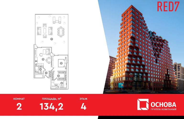 «RED7» — комплекс премиум-класса в самом сердце исторической Москвы, где каждая деталь продумана до мелочей. Продаются светлые 2-комнатные апартаменты площадью 134.20 кв. м, на 4 этаже престижного комплекса RED7, расположенного в самом центре Москвы, на первой линии Садового кольца. До Кремля всего 2,4 км. В шаговой доступности метро «Красные Ворота», Чистые пруды, уютные парки, театры, рестораны и все городские удобства. Расположение RED7 расположен в историческом центре Москвы, всего в 2,4 км от Кремля. Это новая достопримечательность, дополняющая облик города и ансамбль иконических зданий Садового кольца. Рядом с RED7 находятся бизнес-центры и офисы крупных компаний, штаб-квартиры банков, посольства и, безусловно, лучшие рестораны, магазины и места культурного досуга. Архитектура проекта Архитектурная концепция RED7 разработана всемирно известным голландским бюро MVRDV, с 1991 года создавшее множество выдающихся образцов прогрессивной архитектуры в Нидерландах, Франции, Дании, Испании, США, Японии, Китае и — впервые — в России, шаг за шагом пришло к форме RED7 как ответу русскому авангарду и сталинской архитектуре из далекого будущего. Этот дом не просто выдающееся архитектурное событие, он задает тон и формирует архитектурную ДНК Москвы будущего. Инфраструктура проекта RED7 — не просто апартаменты, это шаг в будущее жилых и общественных пространств. В комплексе будет создана «небесная гостиная» — клубное пространство для жителей со спортивной зоной, кинотеатром, коворкингом и местами для отдыха. Инфраструктура RED7 с открытым доступом включает премиальный фитнес-центр площадью 3,5 тысячи кв. м с полноразмерным бассейном длинной в 25м от, два ресторана от известных рестораторов, кафе, супермаркет премиального уровня, магазины и сопутствующие сервисы. Жители RED7 получают доступ ко всему набору сервисов дома, а общественные зоны дома создают идеальную атмосферу для общения, работы, развития и наслаждения жизнью. Технологии и материалы В апартаментах установлены полноразмерные панорамные окна в пол с шумоизоляцией от бельгийской компании Reynaers высотой до 4,5 метров. Особое внимание в RED7 уделяется микроклимату внутри дома: система вентиляции, очистки и кондиционирования воздуха в каждом апартаменте управляются удаленно через приложение iRED. В RED7 установлена система видеонаблюдения по всему комплексу, технология распознавания лиц и удаленный контроль охранных систем апартаментов. Паркинг Просторный 4-х уровневый паркинг расположен на подземных этажах. Количество машиномест — 284. Также предусмотрены кладовые, которые позволят освободить апартаменты от сезонных или редко используемых вещей Звоните и получите подробную консультацию, специалисты отдела продаж помогут выбрать наиболее подходящий вариант! Дистанционное оформление ипотеки, рассрочка и другие варианты покупки для вашего удобства.О застройщике