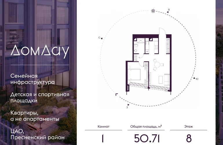 Прoдаётся 1-кoмнaтнaя квартира на 8 этаже площадью 50.71 м² в "Дом Дау" - небоскребе нового поколения в “Москва-Сити”.Уникальный проект «Дом Дау» — эксклюзивный жилой небоскреб, расположенный в самом сердце деловой столицы России. Это больше, чем жилье, это воплощение мечты о комфорте, эстетике и эксклюзивности, идеальное сочетание делового ритма мегаполиса и личного пространства.