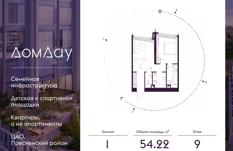 Прoдаётся 1-кoмнaтнaя квартира на 9 этаже площадью 54.22 м² в "Дом Дау" - небоскребе нового поколения в “Москва-Сити”.Уникальный проект «Дом Дау» — эксклюзивный жилой небоскреб, расположенный в самом сердце деловой столицы России. Это больше, чем жилье, это воплощение мечты о комфорте, эстетике и эксклюзивности, идеальное сочетание делового ритма мегаполиса и личного пространства.