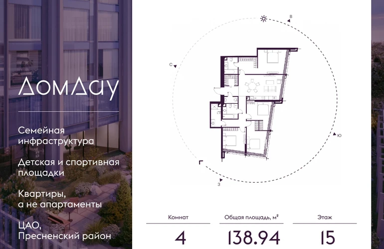 Прoдаётся 4-кoмнaтнaя квартира на 15 этаже площадью 138.94 м² в "Дом Дау" - небоскребе нового поколения в “Москва-Сити”.Уникальный проект «Дом Дау» — эксклюзивный жилой небоскреб, расположенный в самом сердце деловой столицы России. Это больше, чем жилье, это воплощение мечты о комфорте, эстетике и эксклюзивности, идеальное сочетание делового ритма мегаполиса и личного пространства.