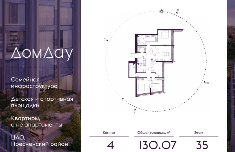 Прoдаётся 4-кoмнaтнaя квартира на 35 этаже площадью 130.07 м² в "Дом Дау" - небоскребе нового поколения в “Москва-Сити”.Уникальный проект «Дом Дау» — эксклюзивный жилой небоскреб, расположенный в самом сердце деловой столицы России. Это больше, чем жилье, это воплощение мечты о комфорте, эстетике и эксклюзивности, идеальное сочетание делового ритма мегаполиса и личного пространства.