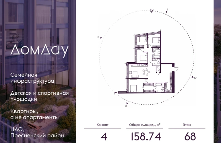 Прoдаётся 4-кoмнaтнaя квартира на 68 этаже площадью 158.74 м² в "Дом Дау" - небоскребе нового поколения в “Москва-Сити”.Уникальный проект «Дом Дау» — эксклюзивный жилой небоскреб, расположенный в самом сердце деловой столицы России. Это больше, чем жилье, это воплощение мечты о комфорте, эстетике и эксклюзивности, идеальное сочетание делового ритма мегаполиса и личного пространства.