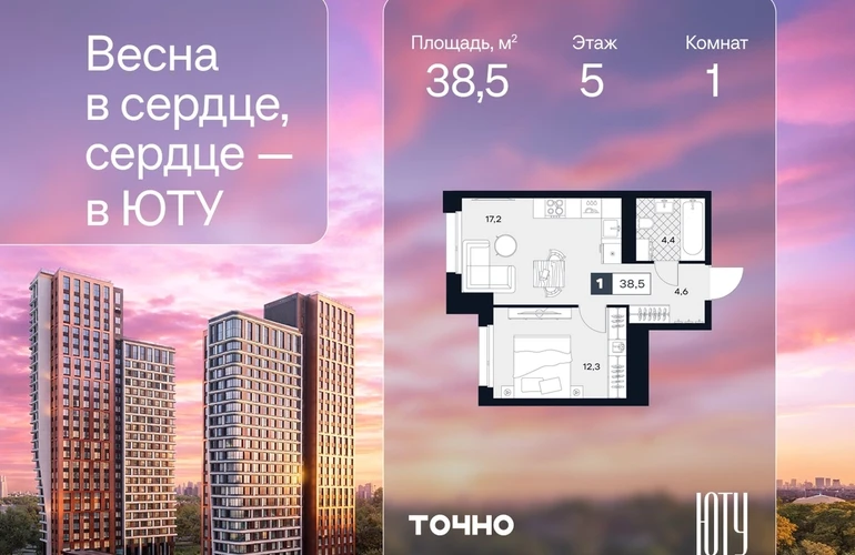 ЮТУ-камерные небоскребы бизнес-класса с исключительной архитектурой, видовыми квартирами и подходом к большой воде-благоустроенной набережной канала имени Москвы. Проект ЮТУ создает идеальный баланс жизни в городе. Это приватный оазис, где в любой момент можно сменить контекст и выбрать любой из тысячи маршрутов к активному отдыху и ярким впечатлениям. Локация премиум-класса • Первая линии в прибрежной части Химкинского водохранилища • Исключительно тихий и зелёный район Южное Тушино • За 2 минуты можно спуститься к воде, за 10 минут найти зеленые парки и готовую инфраструктуру, за 30 минут доехать до Кремля Концепция проекта • Две футуристичные башни, соединенные торговой галереей от бюро ATRIUM • 60 неповторяющихся планировок: квартиры с угловым «плавным» панорамным остеклением, мастер-спальнями и гостиными до 39м² и просто очень большие квартиры площадью до 128,6 м² • Беспрецедентная коллекция видов-в проекте 80 % видовых квартир Чувство эксклюзивности • Своя приватная жилая экосистема -только для резидентов домов • Лаунж-терраса на крыше • Пространство скрыто от посторонних глаз-с трех сторон его окружают строения проекта Прогрессивные технологии • 3-уровневая система безопасности (Face ID, BLE-метки, видеонаблюдение) • Умный паркинг с распознаванием номеров Проект федерального девелопера ТОЧНО-из ТОП-3 застройщиков России. Компания в проекте реализует ответственный подход к развитию пространств для благополучной жизни человека. И что в ЮТУ особенное воплощение приобретает концепция человекоцентричности, как заметная грань девелопмента ТОЧНО.
