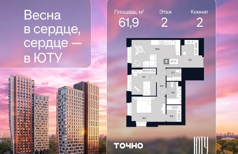 ЮТУ-камерные небоскребы бизнес-класса с исключительной архитектурой, видовыми квартирами и подходом к большой воде-благоустроенной набережной канала имени Москвы. Проект ЮТУ создает идеальный баланс жизни в городе. Это приватный оазис, где в любой момент можно сменить контекст и выбрать любой из тысячи маршрутов к активному отдыху и ярким впечатлениям. Локация премиум-класса • Первая линии в прибрежной части Химкинского водохранилища • Исключительно тихий и зелёный район Южное Тушино • За 2 минуты можно спуститься к воде, за 10 минут найти зеленые парки и готовую инфраструктуру, за 30 минут доехать до Кремля Концепция проекта • Две футуристичные башни, соединенные торговой галереей от бюро ATRIUM • 60 неповторяющихся планировок: квартиры с угловым «плавным» панорамным остеклением, мастер-спальнями и гостиными до 39м² и просто очень большие квартиры площадью до 128,6 м² • Беспрецедентная коллекция видов-в проекте 80 % видовых квартир Чувство эксклюзивности • Своя приватная жилая экосистема -только для резидентов домов • Лаунж-терраса на крыше • Пространство скрыто от посторонних глаз-с трех сторон его окружают строения проекта Прогрессивные технологии • 3-уровневая система безопасности (Face ID, BLE-метки, видеонаблюдение) • Умный паркинг с распознаванием номеров Проект федерального девелопера ТОЧНО-из ТОП-3 застройщиков России. Компания в проекте реализует ответственный подход к развитию пространств для благополучной жизни человека. И что в ЮТУ особенное воплощение приобретает концепция человекоцентричности, как заметная грань девелопмента ТОЧНО.