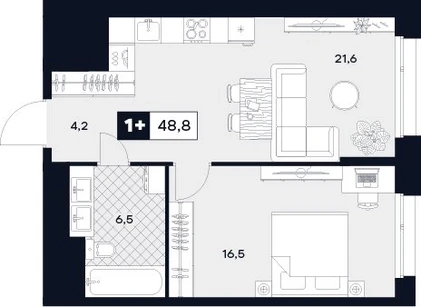 1-ком, 48.8 кв.м., 3/29эт.