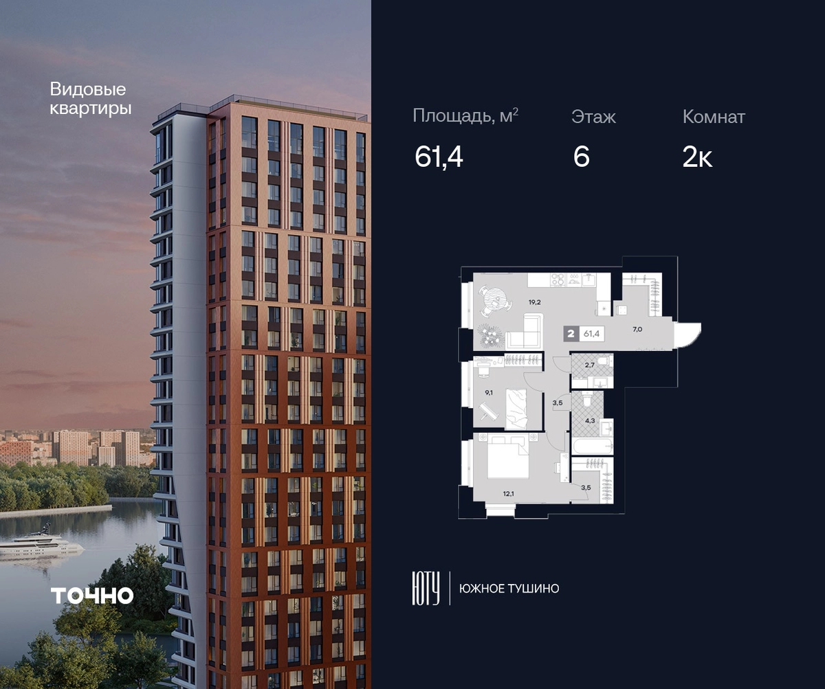 ЮТУ-камерные небоскребы бизнес-класса с исключительной архитектурой, видовыми квартирами и подходом к большой воде-благоустроенной набережной канала имени Москвы. Проект ЮТУ создает идеальный баланс жизни в городе. Это приватный оазис, где в любой момент можно сменить контекст и выбрать любой из тысячи маршрутов к активному отдыху и ярким впечатлениям. Локация премиум-класса • Первая линии в прибрежной части Химкинского водохранилища • Исключительно тихий и зелёный район Южное Тушино • За 2 минуты можно спуститься к воде, за 10 минут найти зеленые парки и готовую инфраструктуру, за 30 минут доехать до Кремля Концепция проекта • Две футуристичные башни, соединенные торговой галереей от бюро ATRIUM • 60 неповторяющихся планировок: квартиры с угловым «плавным» панорамным остеклением, мастер-спальнями и гостиными до 39м² и просто очень большие квартиры площадью до 128,6 м² • Беспрецедентная коллекция видов-в проекте 80 % видовых квартир Чувство эксклюзивности • Своя приватная жилая экосистема -только для резидентов домов • Лаунж-терраса на крыше • Пространство скрыто от посторонних глаз-с трех сторон его окружают строения проекта Прогрессивные технологии • 3-уровневая система безопасности (Face ID, BLE-метки, видеонаблюдение) • Умный паркинг с распознаванием номеров Проект федерального девелопера ТОЧНО-из ТОП-3 застройщиков России. Компания в проекте реализует ответственный подход к развитию пространств для благополучной жизни человека. И что в ЮТУ особенное воплощение приобретает концепция человекоцентричности, как заметная грань девелопмента ТОЧНО.