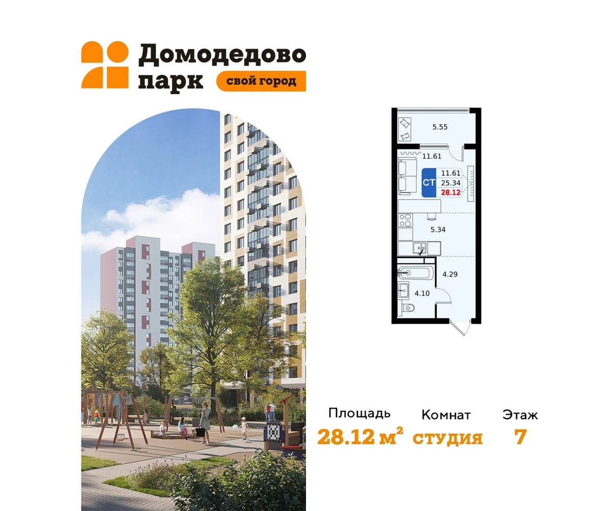 Выгода до 27%. Срок сдачи 2026 год. Продажа напрямую от застройщика в жилом комплексе комфорт класса "Домодедово парк" площадью 28.10 кв.м на 7 этаже 17 этажного дома. Квартира с предчистовой отделкой.
