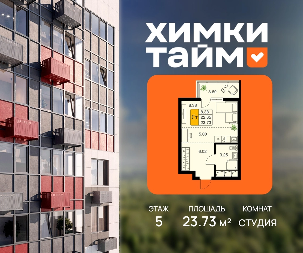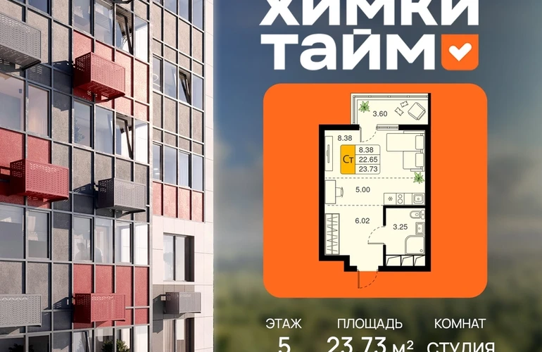 Выгода до 9%. Сдача в 2026 году. Продажа напрямую от застройщика в жилом комплексе комфорт класса "Химки Тайм" площадью 23.73 кв.м на 5 этаже 20 этажного дома.Идеальный выбор для первой квартиры или выгодных инвестиций!