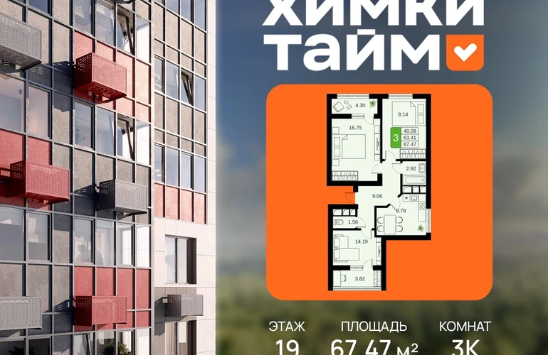 Продается трехкомнатная квартирав жилом комплексе комфорт класса «Химки Тайм» площадью 67.47 кв.м на 19 этаже 20 этажного дома. Квартира с полной отделкой, окна выходят во двор и на улицу.Прекрасный выбор для первой квартиры или инвестиций.