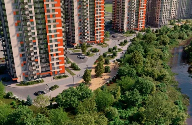 Современный жилой комплекс на северо-западе Москвы, гармонично вписанный в природный ландшафт.