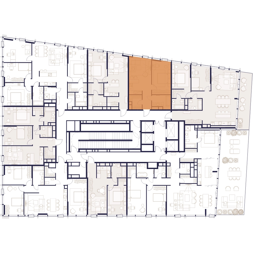 Уникальные форматы квартир с мастер-спальнями, приватными террасами, балконами, а также пентхаусы с открыточными видами на город.