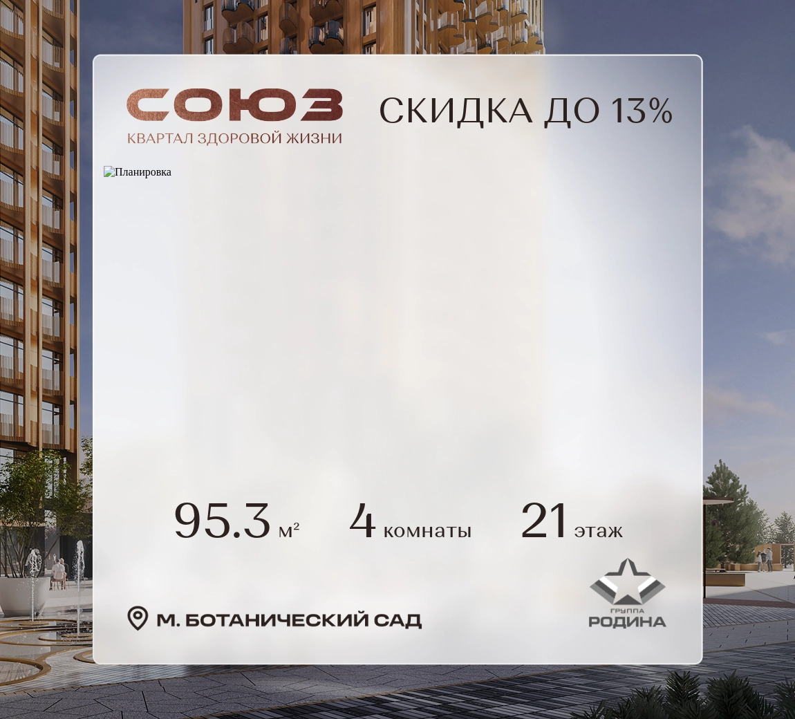 Продаётся 4-комнатная квартира площадью 95 м² на 21 этаже в Жилом Комплексе «Союз».