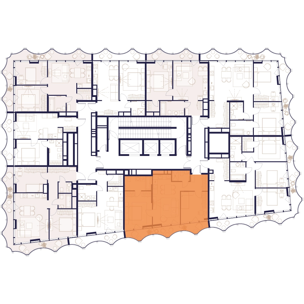 Уникальные форматы квартир с мастер-спальнями, приватными террасами, балконами, а также пентхаусы с открыточными видами на город.