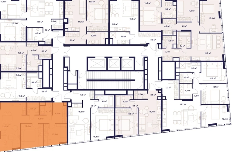 Уникальные форматы квартир с мастер-спальнями, приватными террасами, балконами, а также пентхаусы с открыточными видами на город.