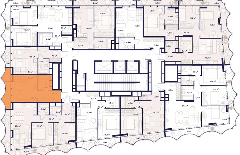 Уникальные форматы квартир с мастер-спальнями, приватными террасами, балконами, а также пентхаусы с открыточными видами на город.