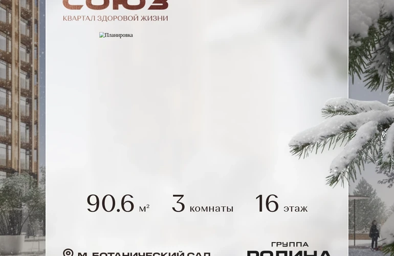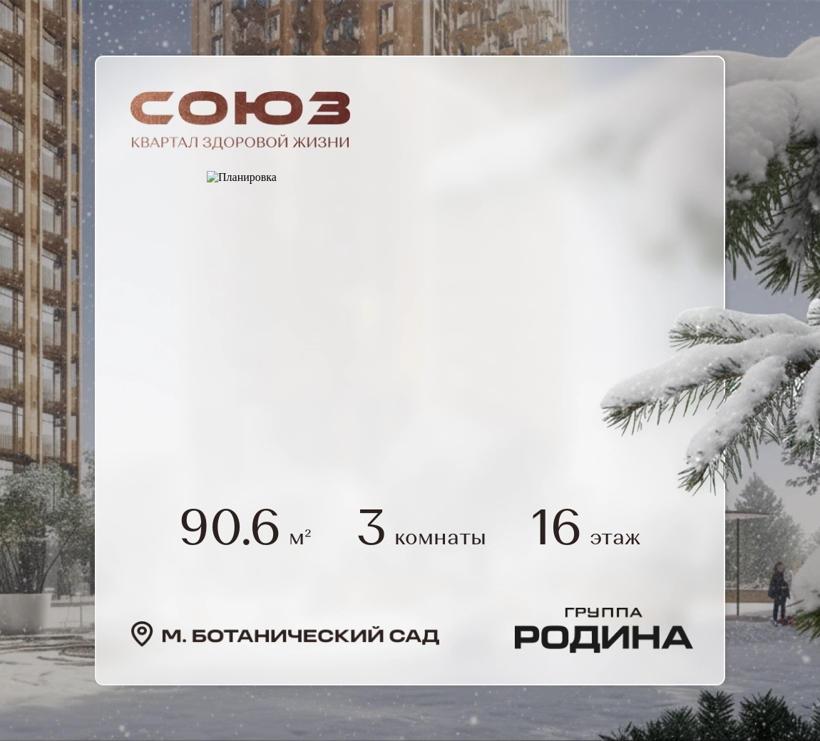 Рассрочка 0%Продаётся 3-комнатная квартира площадью 90.6 м² на 16 этаже в Жилом Комплексе «Союз».