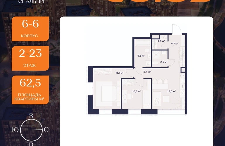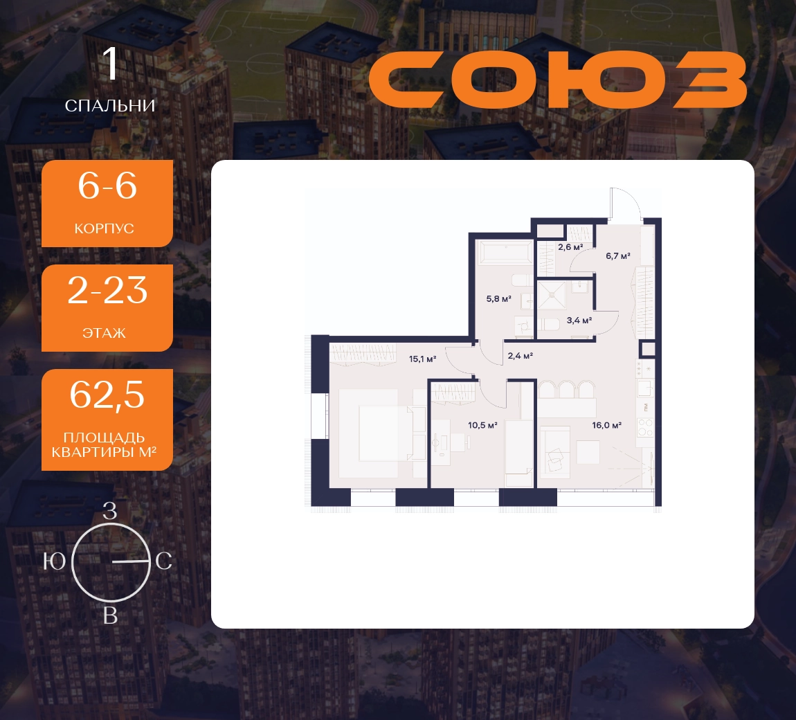 Рассрочка 0%Продаётся 2-комнатная квартира площадью 62.5 м² на 2 этаже в Жилом Комплексе «Союз».