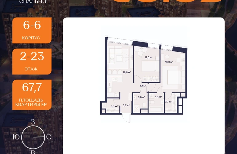 Рассрочка 0%Продаётся 2-комнатная квартира площадью 67.7 м² на 2 этаже в Жилом Комплексе «Союз».