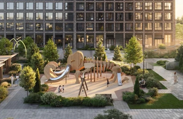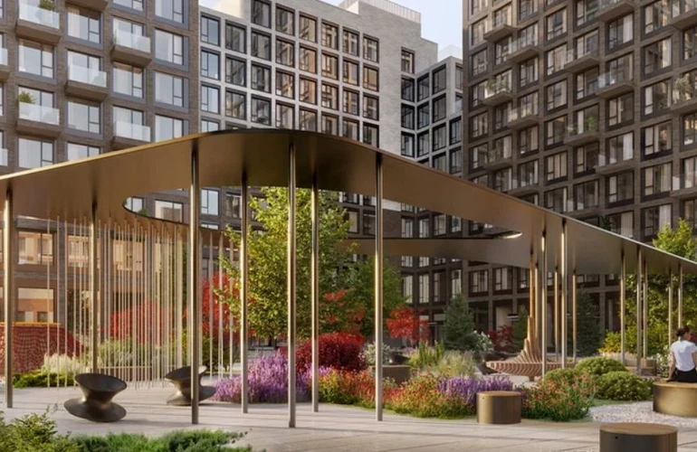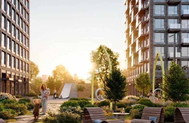 Нова от группы «Самолет» — премиум‑проект из шести монолитно‑кирпичных башен высотой от 10 до 40 этажей с клинкерным фасадом и панорамными окнами. Голландское бюро De Architekten Cie вдохновилось горными пейзажами, создав фасады с перепадами высот и «зелёные» террасы, а лобби в духе UNK Interiors оформлены натуральными материалами и мягкими зонами с каминами. Потолки до 3,4 м и система «умный дом» гарантируют комфорт, а формат «дворы без машин» с подземным паркингом освобождает пространство для садов и амфитеатра.