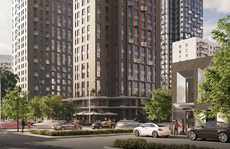 На стилобатной части расположены кафе, кофейни и минимаркеты, в подземном паркинге оборудовано более 400 машино‑мест. Во дворах без машин обустроены игровые и спортивные площадки, амфитеатр и прогулочные аллеи. В шаговой доступности — школа, детский сад, поликлиника и ТЦ «Щука». Рядом — художественные галереи, театр «Школа современной пьесы» и парк «Северное Тушино» для прогулок и занятий спортом.