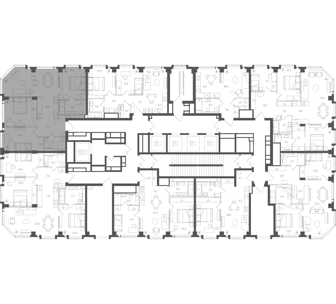 Атрибуты комфорта • Индивидуальная вентиляция квартир; • Вентиляция с очисткой воздуха в общих зонах; • Мультизональное центральное кондиционирование; • Горячая вода круглый год; • Вода качества, сопоставимого с питьевой; • Усиленная звукоизоляция квартир.