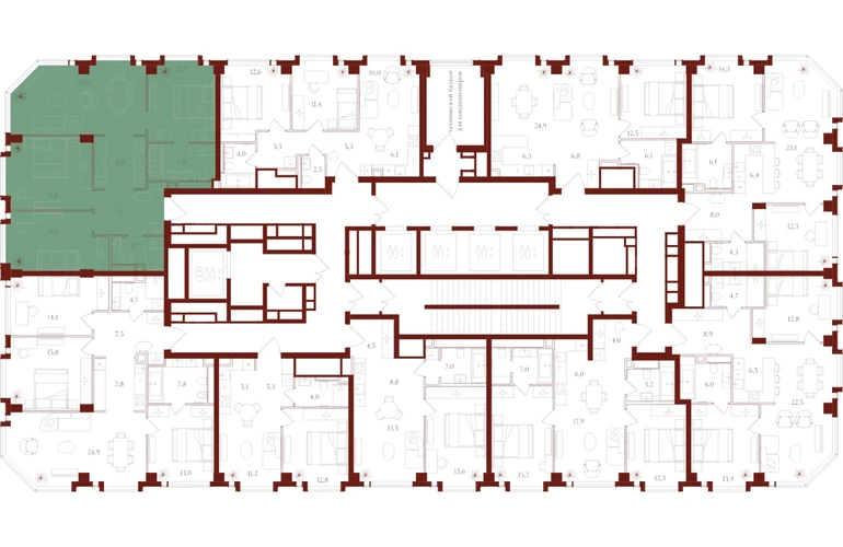Только для резидентов: • Бьюти-комната • Коворкинг, переговорные и акустические кабинеты • Детская игровая комната • Спортзал и студия для тренировок • Просторные колясочные • Сервисная комната • Лапомойки для домашних питомцев