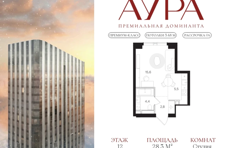 Студия площадью 28,3 м2. Высота потолков – 3,48 м. Этаж 12 из 42.О проекте