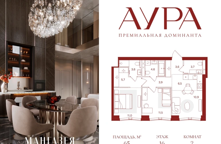 2-комнатная квартира площадью 65.00 м2. Высота потолков – 3.16 м. Этаж 16 из 42. Вид из окон - на город.О проекте АУРА новая премиальная доминанта Москвы в 10 минутах от Садового кольца. Проект состоит из 42-этажной Бронзовой башни и 41-этажной Серебряной. Рядом набережная Москвы-реки, Даниловский рынок, музеи и галереи, престижные школы и вузы.