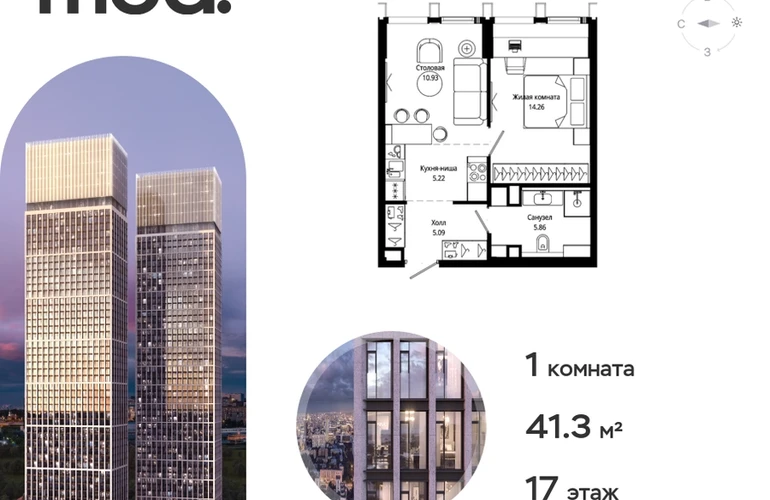 Прямая продажа от застройщика. Жилой комплекс премиум-класса Mod. Продается 1-к квартира общей площадью 41.40 кв. м с предчистовой отделкой в ЖК Mod на 17-м этаже 44 этажного дома. Mod - жилой комплекс премиум-класса в историческом районе Москвы Марьина Роща. Пятый корпус станет частью единого высотного ансамбля, который поднимается над столицей и очерчивает новый горизонт города. Расположение корпуса Mod.C отличается тем, что виды на юго-запад Москвы не ограничены существующей застройкой. Почти все главные доминанты столицы — как на ладони: от сталинских высоток до небоскрёбов делового центра. Любоваться достопримечательностями будет вдвойне приятнее через панорамные окна. Закрытая территория жилого комплекса, продуманное благоустройство, эксплуатируемые кровли стилобата, образовательный центр с детским садом создают приватное пространство для тихой семейной жизни, а городская площадь с фонтанами, ресторан, супермаркет, коммерческая инфраструктура на первых этажах привносят созвучную с ритмом города динамику. Преимущества проекта: • В шаговой доступности новый деловой кластер Москвы • Выразительная авторская архитектура • Единственные в Москве фасады башен из натурального камня • Панорамное остекление и высота потолков до 4,8 м • Квартиры и апартаменты с отделкой MR Base • Многоуровневое благоустройство с зонированием на закрытой территории • Многофункциональный образовательный детский центр с детским садом • Двухуровневый подземный паркинг Транспортная доступность: • 5 минут пешком до станции метро «Марьина роща» • 3 минуты до ТТК • 15 минут до Цветного бульвара Компания MR Group предлагает своим клиентам специальные условия приобретения квартир в рамках программ ипотечного кредитования от банков-партнеров.О застройщике
