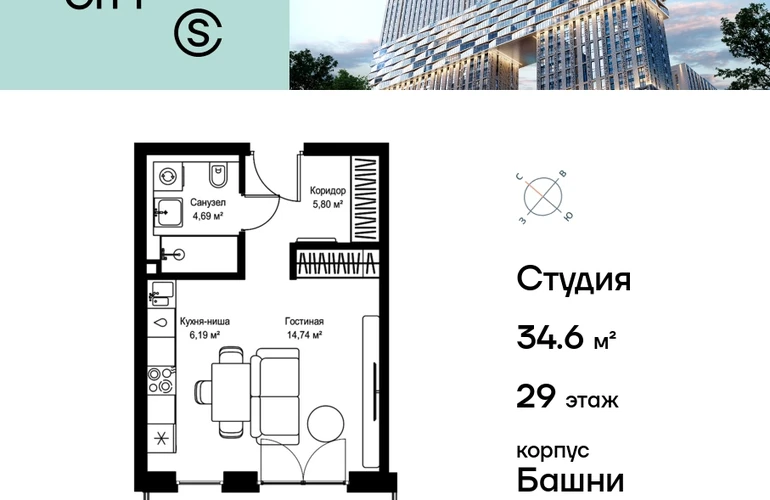 Прямая продажа от застройщика. Продаётся студия общей площадью 34.65 кв. м с предчистовой отделкой в ЖК «Селигер Сити» на 29-м этаже башни Лисицкого. Корпуса четвертой очереди ЖК «Селигер сити» названы в честь трех великих представителей науки и архитектуры, новаторское видение которых — слишком смелое для своего времени — нашло воплощение в уникальных домах жилого комплекса. Вдохновленные авангардными идеями знаменитого советского архитектора Эля Лисицкого, архитекторы создали яркий центр притяжения всего района, задающий новый стандарт жизни в современном мегаполисе — две высокие «Башни Лисицкого» с современной интерпретацией горизонтального небоскреба. Преимущества проекта: Первые три очереди сданы. • 2 минуты пешком от метро «Селигерская» • Архитектурное решение от голландского бюро MLA + • 8 корпусов разной этажности от 8 до 45 этажей • Одна из самых больших придомовых территорий в Москве — размером с 4 футбольных поля • Огороженная охраняемая территория, круглосуточное видеонаблюдение • Европейский подход к благоустройству от бюро WOWHaus: детские площадки для разных возрастов, спортивные площадки, площадки воркаута, дорожки для бега и пеших прогулок, скейтпарк, хоккейная площадка, площадка для выгула собак • Искусственный пруд на территории комплекса с благоустроенной набережной и мостом • Продуманная концепция инфраструктуры: уютные кафе и рестораны, супермаркет, магазин фермерских продуктов, бытовые службы, салон красоты, детские сады • Панорамные окна высотой до 2,5 м, в корпусах 3 очереди витражное остекление высотой до 4,2 м • Широкий выбор квартир — от компактных студий до просторных квартир с тремя спальнями и пентхаусов • Четыре вида дизайнерской отделки квартир от бюро Вlank Architects • Возможность купить квартиру с предчистовой отделкой white box • «Умный дом» на платформе Ujin. Система безопасности, вход на территорию и в подъезд по биометрии или BLE-метке, въезд в паркинг по считывателю номера, контроль климата. Все для комфортной жизни! • Лобби по индивидуальному дизайн проекту от европейского бюро Вlank Architects: лаунж-зоны, ресепшен, колясочная, помещение для мытья лап животным после прогулки • Подземный паркинг на 2189 машино-мест по индивидуальному дизайну, с зарядными устройствами для электромобилей, постами для подкачки шин и келлерами • Надежный девелопер с опытом премиальных проектов MR Group Расположение комплекса: • 2 минуты от станции метро «Селигерская» • 7 минут на машине до станции метро «Окружная» • Предусмотрен удобный выезд в сторону ТТК (всего 9 км или 15 минут без пробок) • МКАД в 10 минутах на машине Компания MR Group предлагает своим клиентам специальные условия приобретения квартир в рамках программ ипотечного кредитования от банков-партнеров.О застройщике