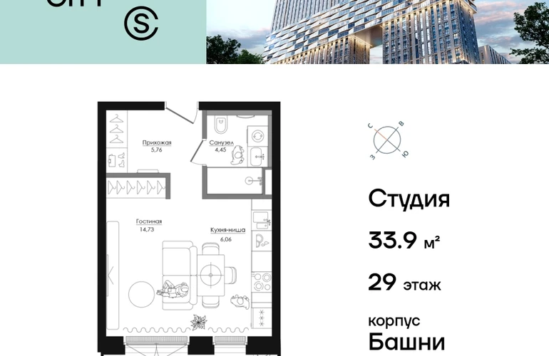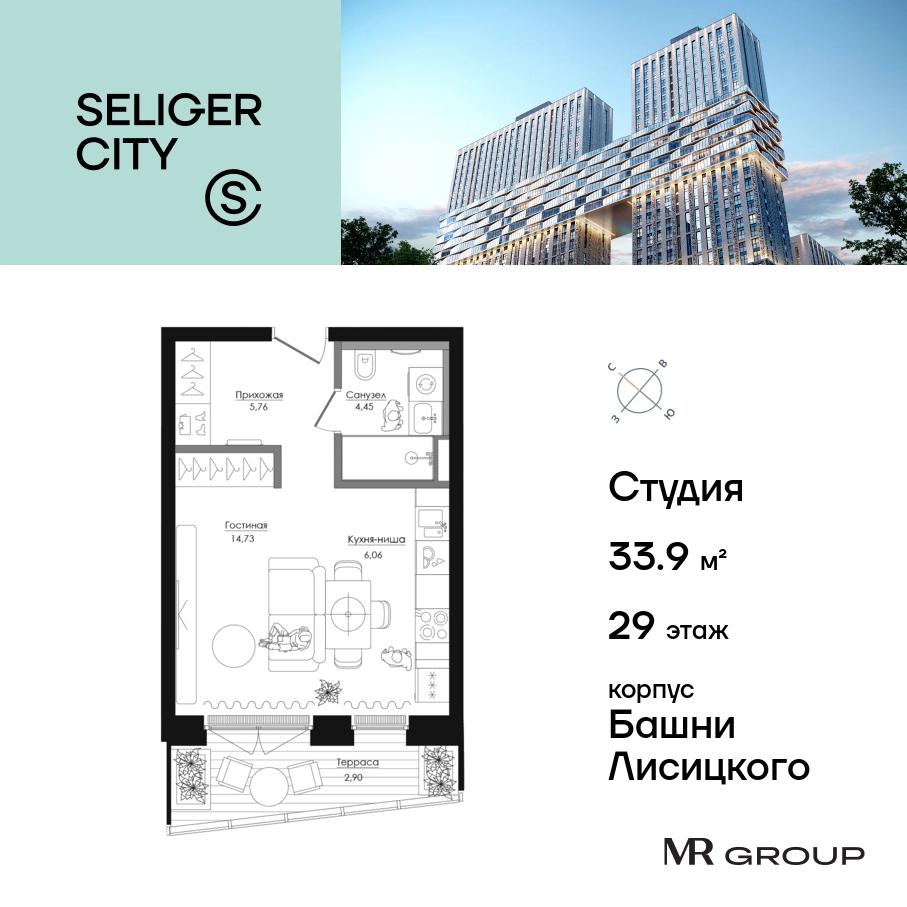 Прямая продажа от застройщика. Продаётся студия общей площадью 34.45 кв. м с предчистовой отделкой в ЖК «Селигер Сити» на 29-м этаже башни Лисицкого. Корпуса четвертой очереди ЖК «Селигер сити» названы в честь трех великих представителей науки и архитектуры, новаторское видение которых — слишком смелое для своего времени — нашло воплощение в уникальных домах жилого комплекса. Вдохновленные авангардными идеями знаменитого советского архитектора Эля Лисицкого, архитекторы создали яркий центр притяжения всего района, задающий новый стандарт жизни в современном мегаполисе — две высокие «Башни Лисицкого» с современной интерпретацией горизонтального небоскреба. Преимущества проекта: Первые три очереди сданы. • 2 минуты пешком от метро «Селигерская» • Архитектурное решение от голландского бюро MLA + • 8 корпусов разной этажности от 8 до 45 этажей • Одна из самых больших придомовых территорий в Москве — размером с 4 футбольных поля • Огороженная охраняемая территория, круглосуточное видеонаблюдение • Европейский подход к благоустройству от бюро WOWHaus: детские площадки для разных возрастов, спортивные площадки, площадки воркаута, дорожки для бега и пеших прогулок, скейтпарк, хоккейная площадка, площадка для выгула собак • Искусственный пруд на территории комплекса с благоустроенной набережной и мостом • Продуманная концепция инфраструктуры: уютные кафе и рестораны, супермаркет, магазин фермерских продуктов, бытовые службы, салон красоты, детские сады • Панорамные окна высотой до 2,5 м, в корпусах 3 очереди витражное остекление высотой до 4,2 м • Широкий выбор квартир — от компактных студий до просторных квартир с тремя спальнями и пентхаусов • Четыре вида дизайнерской отделки квартир от бюро Вlank Architects • Возможность купить квартиру с предчистовой отделкой white box • «Умный дом» на платформе Ujin. Система безопасности, вход на территорию и в подъезд по биометрии или BLE-метке, въезд в паркинг по считывателю номера, контроль климата. Все для комфортной жизни! • Лобби по индивидуальному дизайн проекту от европейского бюро Вlank Architects: лаунж-зоны, ресепшен, колясочная, помещение для мытья лап животным после прогулки • Подземный паркинг на 2189 машино-мест по индивидуальному дизайну, с зарядными устройствами для электромобилей, постами для подкачки шин и келлерами • Надежный девелопер с опытом премиальных проектов MR Group Расположение комплекса: • 2 минуты от станции метро «Селигерская» • 7 минут на машине до станции метро «Окружная» • Предусмотрен удобный выезд в сторону ТТК (всего 9 км или 15 минут без пробок) • МКАД в 10 минутах на машине Компания MR Group предлагает своим клиентам специальные условия приобретения квартир в рамках программ ипотечного кредитования от банков-партнеров.О застройщике