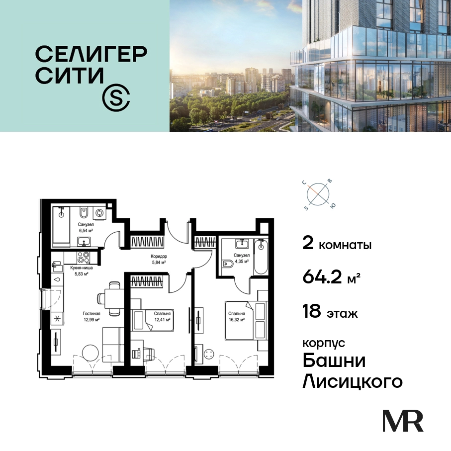 Прямая продажа от застройщика. Продаётся 2-к квартира общей площадью 64.28 кв. м с предчистовой отделкой в ЖК «Селигер Сити» на 18-м этаже башни Лисицкого. Корпуса четвертой очереди ЖК «Селигер сити» названы в честь трех великих представителей науки и архитектуры, новаторское видение которых — слишком смелое для своего времени — нашло воплощение в уникальных домах жилого комплекса. Вдохновленные авангардными идеями знаменитого советского архитектора Эля Лисицкого, архитекторы создали яркий центр притяжения всего района, задающий новый стандарт жизни в современном мегаполисе — две высокие «Башни Лисицкого» с современной интерпретацией горизонтального небоскреба. Преимущества проекта: Первые три очереди сданы. • 2 минуты пешком от метро «Селигерская» • Архитектурное решение от голландского бюро MLA + • 8 корпусов разной этажности от 8 до 45 этажей • Одна из самых больших придомовых территорий в Москве — размером с 4 футбольных поля • Огороженная охраняемая территория, круглосуточное видеонаблюдение • Европейский подход к благоустройству от бюро WOWHaus: детские площадки для разных возрастов, спортивные площадки, площадки воркаута, дорожки для бега и пеших прогулок, скейтпарк, хоккейная площадка, площадка для выгула собак • Искусственный пруд на территории комплекса с благоустроенной набережной и мостом • Продуманная концепция инфраструктуры: уютные кафе и рестораны, супермаркет, магазин фермерских продуктов, бытовые службы, салон красоты, детские сады • Панорамные окна высотой до 2,5 м, в корпусах 3 очереди витражное остекление высотой до 4,2 м • Широкий выбор квартир — от компактных студий до просторных квартир с тремя спальнями и пентхаусов • Четыре вида дизайнерской отделки квартир от бюро Вlank Architects • Возможность купить квартиру с предчистовой отделкой white box • «Умный дом» на платформе Ujin. Система безопасности, вход на территорию и в подъезд по биометрии или BLE-метке, въезд в паркинг по считывателю номера, контроль климата. Все для комфортной жизни! • Лобби по индивидуальному дизайн проекту от европейского бюро Вlank Architects: лаунж-зоны, ресепшен, колясочная, помещение для мытья лап животным после прогулки • Подземный паркинг на 2189 машино-мест по индивидуальному дизайну, с зарядными устройствами для электромобилей, постами для подкачки шин и келлерами • Надежный девелопер с опытом премиальных проектов MR Group Расположение комплекса: • 2 минуты от станции метро «Селигерская» • 7 минут на машине до станции метро «Окружная» • Предусмотрен удобный выезд в сторону ТТК (всего 9 км или 15 минут без пробок) • МКАД в 10 минутах на машине Компания MR Group предлагает своим клиентам специальные условия приобретения квартир в рамках программ ипотечного кредитования от банков-партнеров.О застройщике