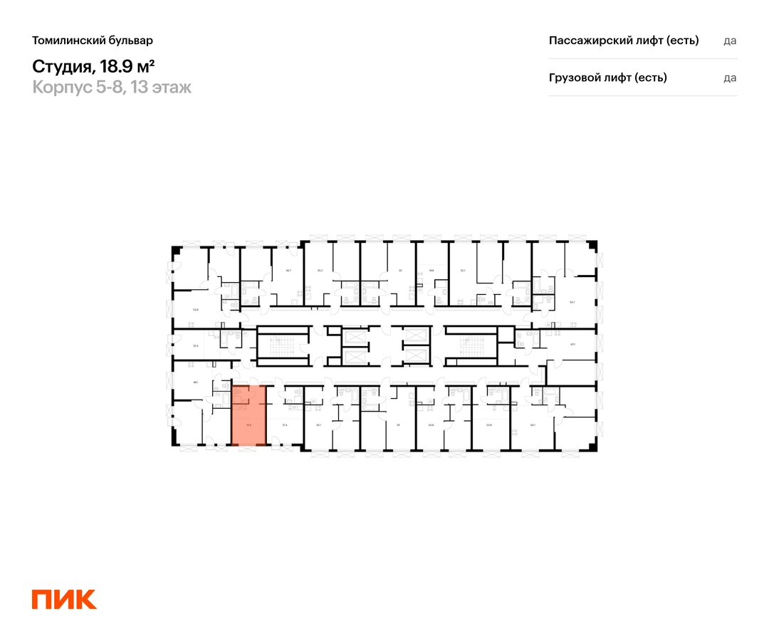 В Котельниках Московской области продаётся студия квартира площадью18.9 на 13 этаже 25 этажного дома (корпус 5-8, секция 1) в проекте ПИК «Томилинский бульвар». Удобное расположение 20 минут пешком до станции метро «Котельники» и 10 минут на машине до МЦД-3 «Люберцы». 4 минуты на автомобиле до Новорязанского шоссе и 6 минут до МКАД. 8 минут на автомобиле до ТЦ «МЕГА Белая Дача». 13 минут пешком до парка «Кузьминки» и 12 минут на автомобиле до Люберецких карьеров. Особенности проекта «Томилинский бульвар» — квартал из 11 корпусов с собственной инфраструктурой рядом с Кузьминским парком. У жителей будет всё необходимое рядом с домом, а удобные и разнообразные планировки позволят каждому выбрать квартиру для собственного сценария жизни. Преимущества проекта: Отделка: Готовая Светлые и просторные холлы с двумя выходами и лифтами с усилителями связи. Три детских сада на 200, 150 и 45 мест и поликлиника на территории проекта. Дворы-парки с местами для отдыха, детскими и спортивными площадками. Магазины, кафе и полезные сервисы на первых этажах домов. Надземный и подземный паркинги. АртикулО застройщике
