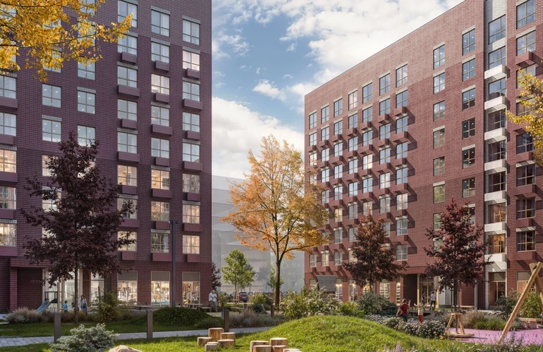 В проекте только 9-этажные дома, окружённые живописными локациями и природными памятниками, — всё это создаёт атмосферу спокойной загородной жизни.