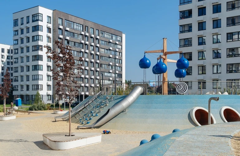 Через квартал протянется широкий пешеходный бульвар для прогулок и отдыха. Уже открыт ПлейХаб «Гравити» — большая игровая площадка для детей разного возраста с лазательным комплексом, песочной станцией и зонами отдыха для родителей. На первых этажах домов работают магазины, кафе и полезные сервисы. А на парковке установлены зарядные станции для электрокаров.