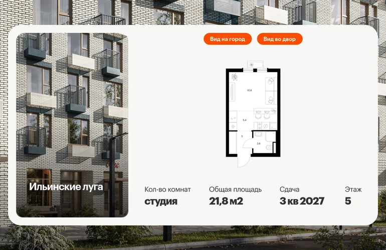 В Красногорске Московской области продаётся студия квартира площадью 21.8 на 5 этаже 9 этажного дома (корпус 3.1, секция 4) в проекте ПИК «Ильинские луга». Удобное расположение 20 минут на автомобиле до станций метро «Волоколамская», «Тушинская» и «Строгино». 20 минут на машине до МЦД «Павшино». 5 минут на автомобиле до ТЦ «РИГАМОЛЛ» и 10 минут до ТЦ «Твой дом» и гипермаркета «Глобус». 10 минут на автомобиле до музея-заповедника Архангельское. Особенности проекта «Ильинские луга» — масштабный проект с собственной инфраструктурой и атмосферой загородной жизни. Удобные и разнообразные планировки позволят каждому выбрать квартиру под собственный сценарий жизни. Преимущества проекта: Отделка: Предчистовая Светлые и просторные холлы с быстрыми тихими лифтами. Девять детских садов, четыре школы и современная поликлиника на территории проекта. Дворы-парки с местами для отдыха, детскими и спортивными площадками. Пешеходный бульвар для прогулок и отдыха. ПлейХаб «Гравити» — большая игровая площадка для детей. Магазины, кафе и полезные сервисы на первых этажах домов. Наземный паркинг с зарядными станциями для электрокаров. АртикулО застройщике