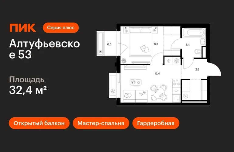 В Алтуфьевском районе продаётся 1-комнатная квартира квартира площадью 32.4 на 3 этаже 32 этажного дома (корпус, секция) в проекте ПИК «Алтуфьевское 53». Удобное расположение 15 минут на общественном транспорте до станции метро «Отрадное». 20 минут пешком до МЦД «Дегунино». 2 минуты на автомобиле до Алтуфьевского шоссе и 20 минут до ТТК. 9 минут на машине до Ботанического сада и ВДНХ. Особенности проекта «Алтуфьевское 53» — современный проект «Серии плюс» с авторской архитектурой в районе, где создана качественная среда для полноценной жизни, работы и отдыха. А удобные и разнообразные планировки позволят каждому выбрать квартиру для собственного сценария жизни. Преимущества проекта: Отделка: Готовая Особенности планировки: Гардеробная, Мастер-спальня, Сквозной санузел, Открытый балкон, Внутрипольные конвекторы, Умная планировка Лобби с дизайнерской отделкой, зонами ожидания, гостевыми санузлами и колясочными. Два детских сада с бассейном для 200 и 225 малышей и школа для 1000 учеников в минуте ходьбы от проекта. Дворы-парки с местами для отдыха, игровыми и спортивными площадками. Подземный паркинг. АртикулО застройщике