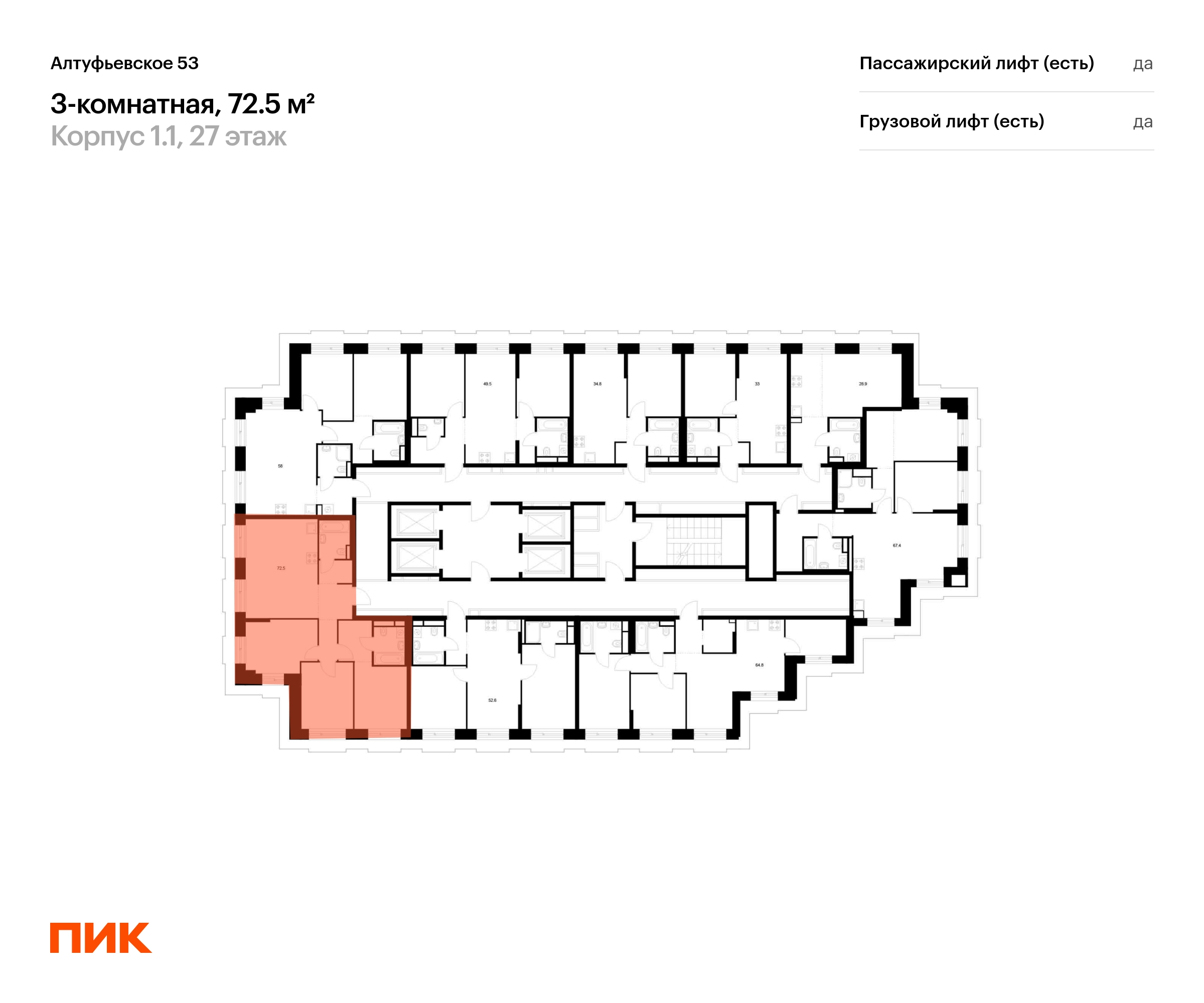 В Алтуфьевском районе продаётся 3-комнатная квартира квартира площадью 73 на 27 этаже 32 этажного дома (корпус, секция) в проекте ПИК «Алтуфьевское 53». Удобное расположение 15 минут на общественном транспорте до станции метро «Отрадное». 20 минут пешком до МЦД «Дегунино». 2 минуты на автомобиле до Алтуфьевского шоссе и 20 минут до ТТК. 9 минут на машине до Ботанического сада и ВДНХ. Особенности проекта «Алтуфьевское 53» — современный проект «Серии плюс» с авторской архитектурой в районе, где создана качественная среда для полноценной жизни, работы и отдыха. А удобные и разнообразные планировки позволят каждому выбрать квартиру для собственного сценария жизни. Преимущества проекта: Отделка: Готовая Особенности планировки: Гардеробная, Мастер-спальня, Кухня-гостиная, Два и более санузла, Умная планировка Лобби с дизайнерской отделкой, зонами ожидания, гостевыми санузлами и колясочными. Два детских сада с бассейном для 200 и 225 малышей и школа для 1000 учеников в минуте ходьбы от проекта. Дворы-парки с местами для отдыха, игровыми и спортивными площадками. Подземный паркинг. АртикулО застройщике
