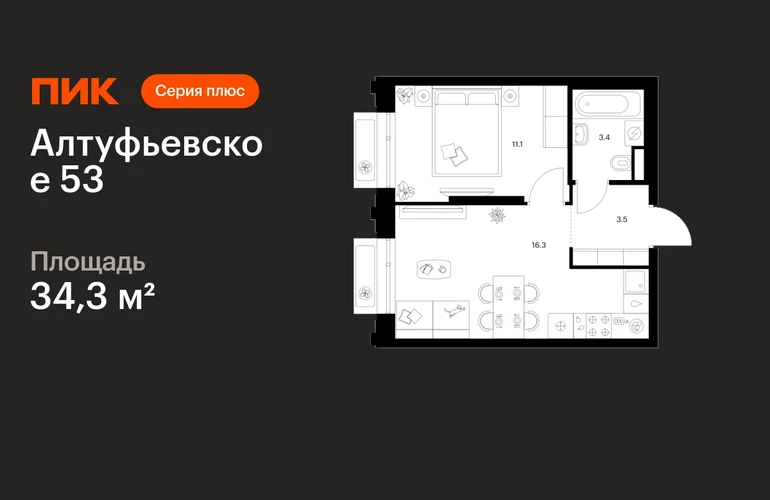 В Алтуфьевском районе продаётся 1-комнатная квартира квартира площадью 34.3 на 4 этаже 32 этажного дома (корпус, секция) в проекте ПИК «Алтуфьевское 53». Удобное расположение 15 минут на общественном транспорте до станции метро «Отрадное». 20 минут пешком до МЦД «Дегунино». 2 минуты на автомобиле до Алтуфьевского шоссе и 20 минут до ТТК. 9 минут на машине до Ботанического сада и ВДНХ. Особенности проекта «Алтуфьевское 53» — современный проект «Серии плюс» с авторской архитектурой в районе, где создана качественная среда для полноценной жизни, работы и отдыха. А удобные и разнообразные планировки позволят каждому выбрать квартиру для собственного сценария жизни. Преимущества проекта: Отделка: Готовая Особенности планировки: Кухня-гостиная Лобби с дизайнерской отделкой, зонами ожидания, гостевыми санузлами и колясочными. Два детских сада с бассейном для 200 и 225 малышей и школа для 1000 учеников в минуте ходьбы от проекта. Дворы-парки с местами для отдыха, игровыми и спортивными площадками. Подземный паркинг. АртикулО застройщике