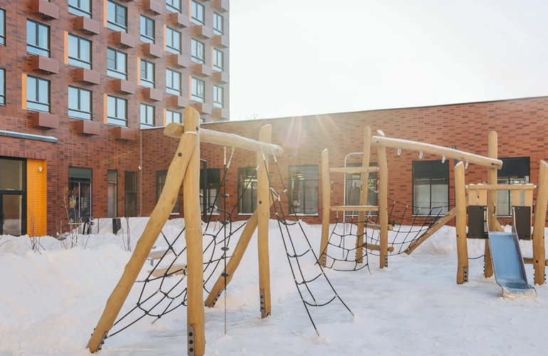 Проект состоит из корпусов с подземными паркингами, школы и детского сада. В зелёных дворах-парках будут места для отдыха, современные детские и спортивные площадки. На первых этажах откроются магазины, кафе и другие сервисы — за кофе и свежим хлебом к завтраку можно будет просто спуститься на лифте.