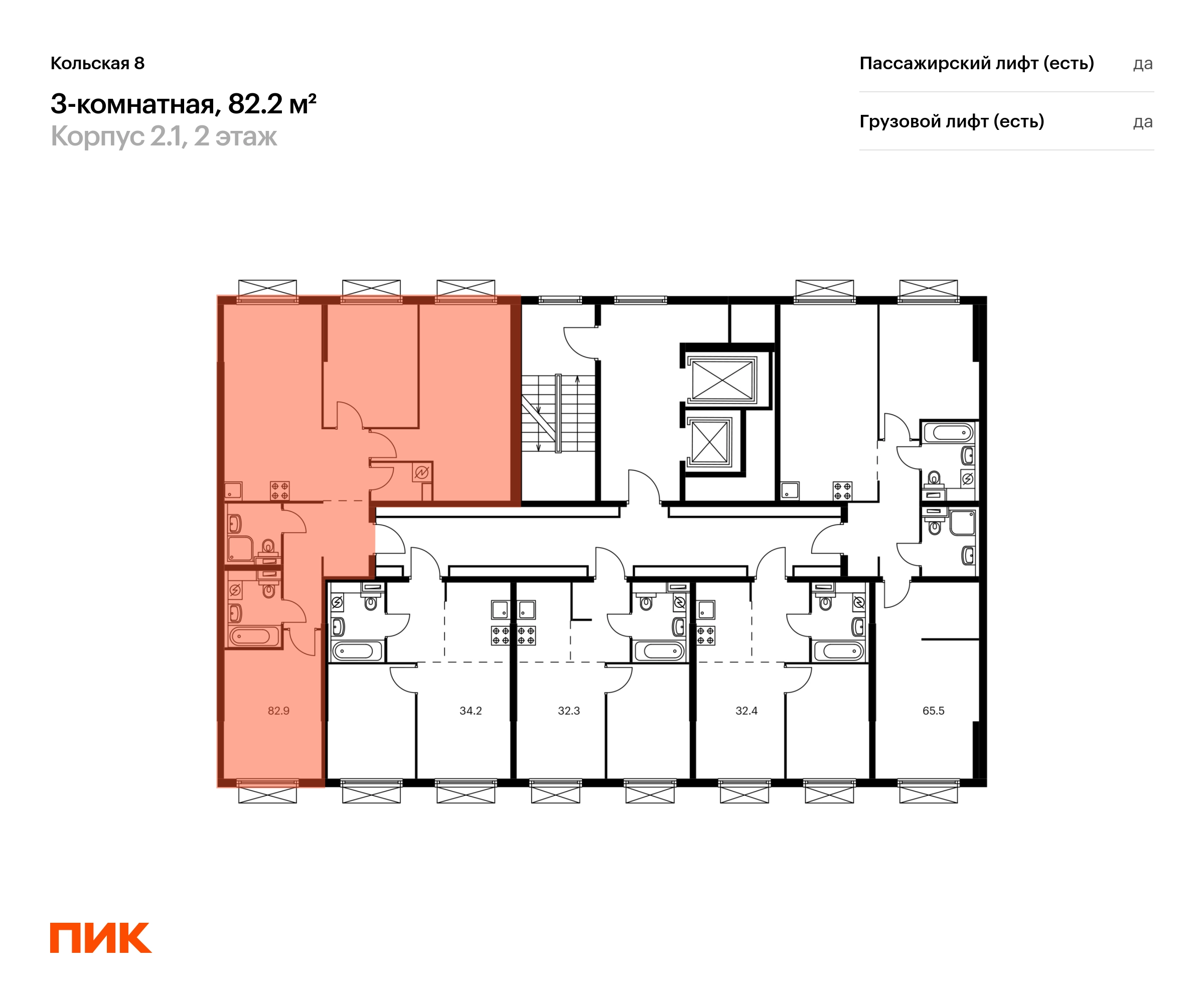 Продаётся 3-комн.квартира площадью 82.20 кв.м на 2 этаже 15 этажного дома (Корпус 2.1, секция 3) проекта ПИК Кольская 8. Светлый просторный подъезд на уровне земли, функциональная планировка, большие окна, с отделкой. Жилой квартал «Кольская 8» строится в Бабушкинском районе, в 8 минутах пешком от метро «Свиблово». До Ярославского шоссе на машине — 8 минут, а до ТТК — 16. До нескольких парков и набережной реки Яузы можно дойти пешком. В проекте два жилых блока с подземными паркингами, школа и детский сад. В зелёных дворах-парках будут места для отдыха, современные детские и спортивные площадки. На первых этажах откроются магазины, кафе и другие сервисы — за кофе и свежим хлебом к завтраку можно будет просто спуститься на лифте. Рядом с кварталом есть всё для комфортной жизни: в 8 минутах неспешным шагом — благоустроенные парки Яуза и Свиблово, а до Ботанического сада можно доехать за 7 минут на машине. Недалеко от проекта находятся детские сады, школы, поликлиники, магазины и торговые центры. Артикул - 834794О застройщике