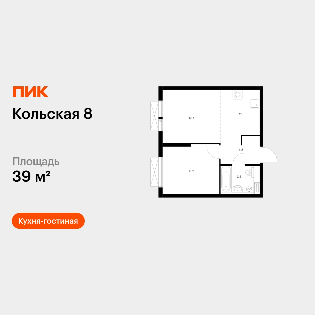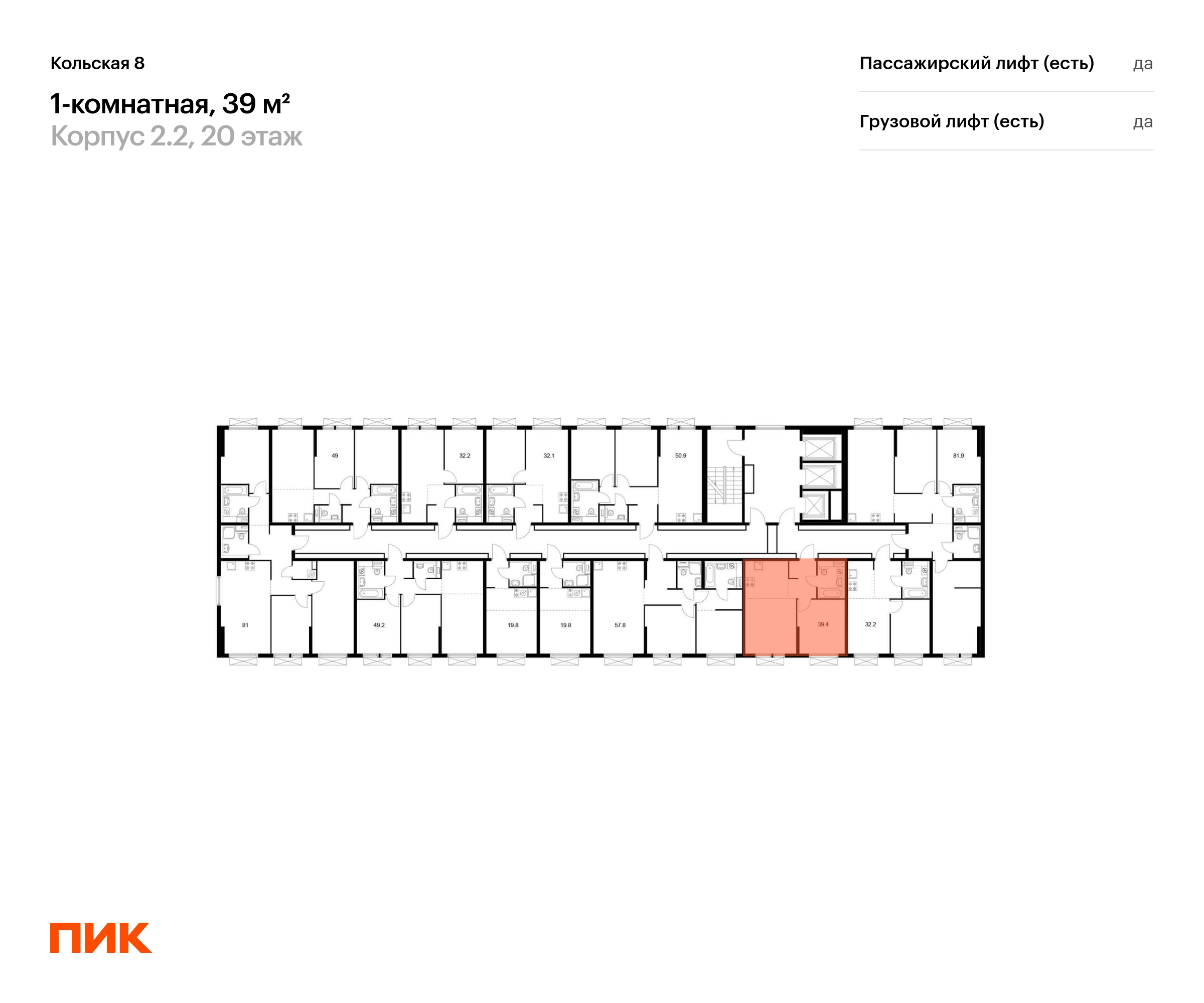 Продаётся 1-комн.квартира площадью 39.00 кв.м на 20 этаже 24 этажного дома (Корпус 2.2, секция 5) проекта ПИК Кольская 8. Светлый просторный подъезд на уровне земли, функциональная планировка, большие окна, с отделкой. Жилой квартал «Кольская 8» строится в Бабушкинском районе, в 8 минутах пешком от метро «Свиблово». До Ярославского шоссе на машине — 8 минут, а до ТТК — 16. До нескольких парков и набережной реки Яузы можно дойти пешком. В проекте два жилых блока с подземными паркингами, школа и детский сад. В зелёных дворах-парках будут места для отдыха, современные детские и спортивные площадки. На первых этажах откроются магазины, кафе и другие сервисы — за кофе и свежим хлебом к завтраку можно будет просто спуститься на лифте. Рядом с кварталом есть всё для комфортной жизни: в 8 минутах неспешным шагом — благоустроенные парки Яуза и Свиблово, а до Ботанического сада можно доехать за 7 минут на машине. Недалеко от проекта находятся детские сады, школы, поликлиники, магазины и торговые центры. Артикул - 835418О застройщике