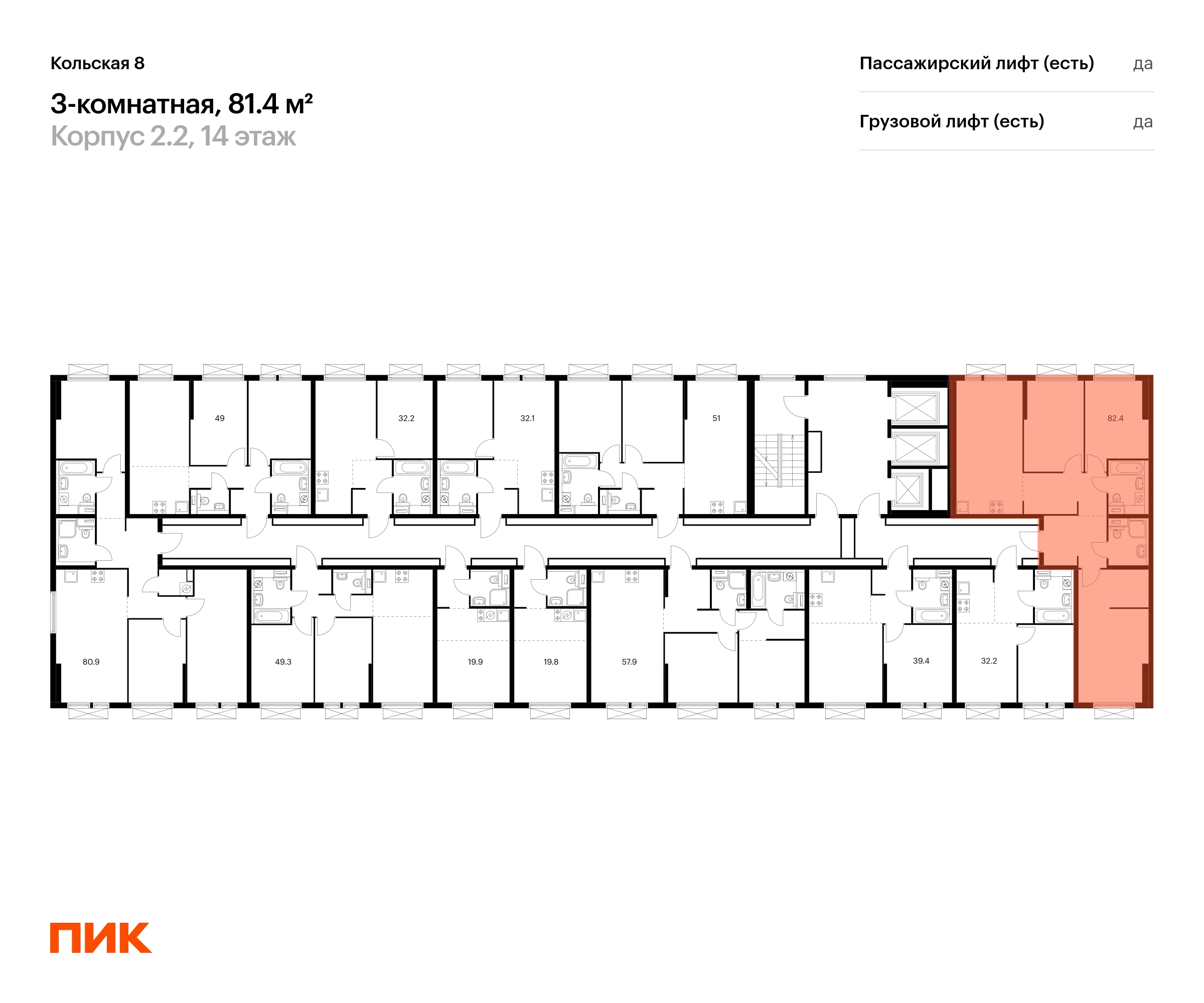 Продаётся 3-комн.квартира площадью 81.40 кв.м на 14 этаже 24 этажного дома (Корпус 2.2, секция 5) проекта ПИК Кольская 8. Светлый просторный подъезд на уровне земли, функциональная планировка, большие окна, с отделкой. Жилой квартал «Кольская 8» строится в Бабушкинском районе, в 8 минутах пешком от метро «Свиблово». До Ярославского шоссе на машине — 8 минут, а до ТТК — 16. До нескольких парков и набережной реки Яузы можно дойти пешком. В проекте два жилых блока с подземными паркингами, школа и детский сад. В зелёных дворах-парках будут места для отдыха, современные детские и спортивные площадки. На первых этажах откроются магазины, кафе и другие сервисы — за кофе и свежим хлебом к завтраку можно будет просто спуститься на лифте. Рядом с кварталом есть всё для комфортной жизни: в 8 минутах неспешным шагом — благоустроенные парки Яуза и Свиблово, а до Ботанического сада можно доехать за 7 минут на машине. Недалеко от проекта находятся детские сады, школы, поликлиники, магазины и торговые центры. Артикул - 835315О застройщике
