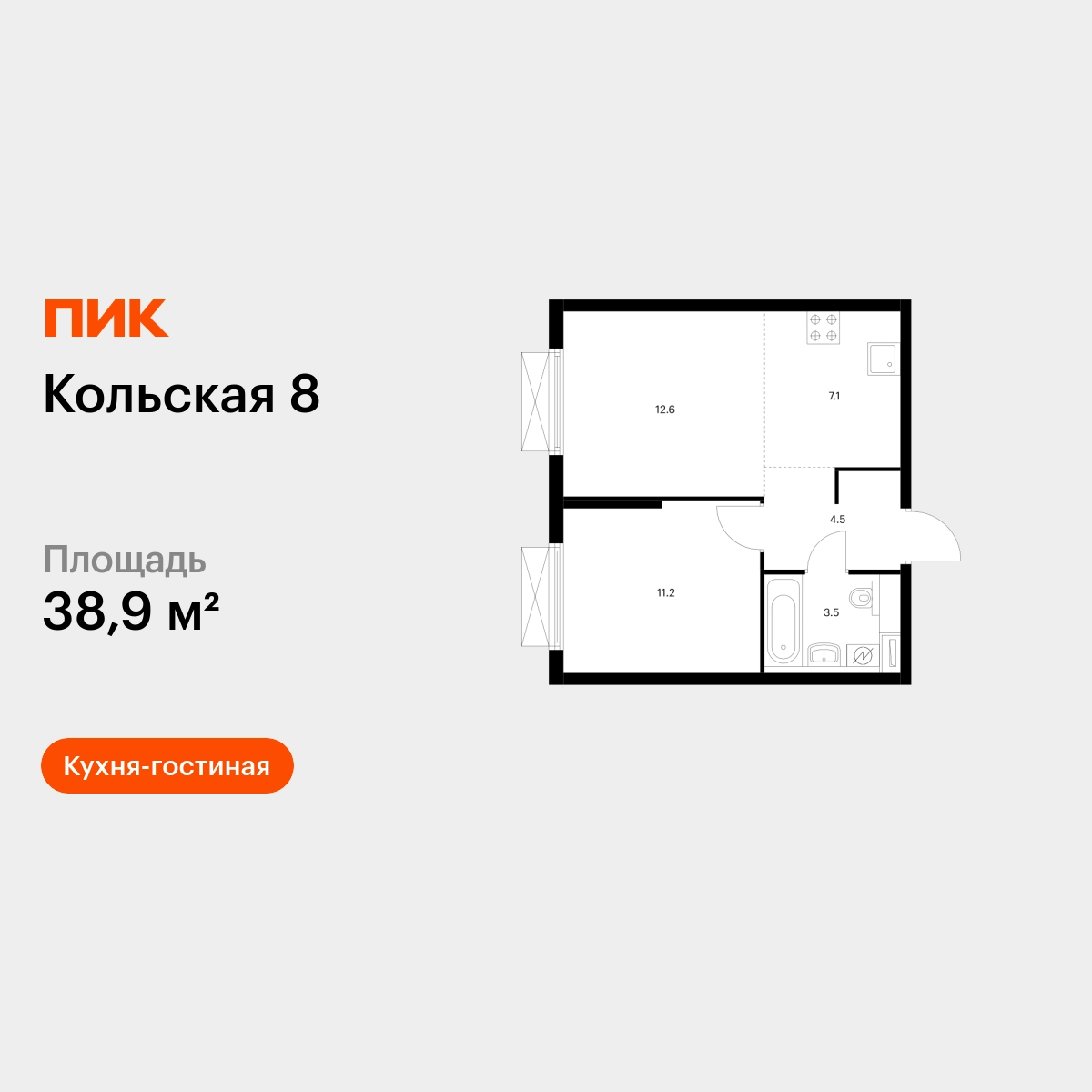 Продаётся 1-комн.квартира площадью 38.90 кв.м на 23 этаже 24 этажного дома (Корпус 2.2, секция 5) проекта ПИК Кольская 8. Светлый просторный подъезд на уровне земли, функциональная планировка, большие окна, с отделкой. Жилой квартал «Кольская 8» строится в Бабушкинском районе, в 8 минутах пешком от метро «Свиблово». До Ярославского шоссе на машине — 8 минут, а до ТТК — 16. До нескольких парков и набережной реки Яузы можно дойти пешком. В проекте два жилых блока с подземными паркингами, школа и детский сад. В зелёных дворах-парках будут места для отдыха, современные детские и спортивные площадки. На первых этажах откроются магазины, кафе и другие сервисы — за кофе и свежим хлебом к завтраку можно будет просто спуститься на лифте. Рядом с кварталом есть всё для комфортной жизни: в 8 минутах неспешным шагом — благоустроенные парки Яуза и Свиблово, а до Ботанического сада можно доехать за 7 минут на машине. Недалеко от проекта находятся детские сады, школы, поликлиники, магазины и торговые центры. Артикул - 835489О застройщике
