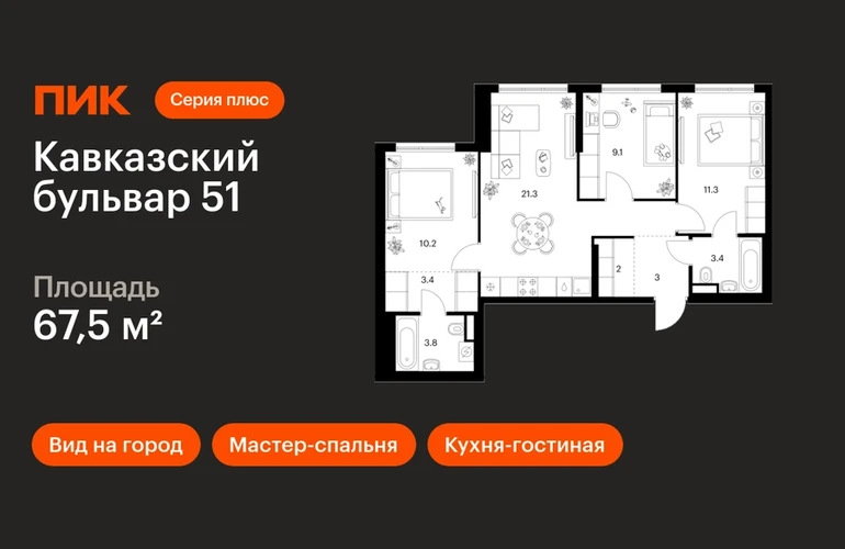 В районе Царицыно продаётся 3-комнатная квартира квартира площадью 67.5 на 2 этаже 23 этажного дома (корпус, секция) в проекте ПИК «Кавказский бульвар 51». Удобное расположение 17 минут пешком до станции метро «Кантемировская» и 20 минут до станции «Чертаново». 10 минут на машине до МКАД, 11 минут до Варшавского шоссе и 16 минут до ТТК. 8 минут пешком до Аршиновского и 13 минут до парка «Сосенки». 9 минут на автомобиле до музея-заповедника «Царицыно». Особенности проекта «Кавказский бульвар 51» — современный квартал в районе Царицыно. Проект частично реализован: первые дома уже сданы, а на первых этажах открыты магазины и полезные сервисы. В корпусах «Серии плюс» вас ждут продуманные планировки с мастер-спальней, кухней-гостиной и гардеробной. Преимущества проекта: Отделка: Готовая Особенности планировки: Гардеробная, Мастер-спальня, Разнесенные спальни, Кухня-ниша, Кухня-гостиная, Два и более санузла, Сквозной санузел, Умная планировка Дизайнерские лобби с быстрыми и тихими лифтами, кондиционерами, зонами ожидания и колясочными. Детский сад для 250 малышей и школа для 900 учеников на территории проекта. Пешеходный бульвар с местами для отдыха, игровыми и спортивными площадками. SportPark с футбольным и волейбольным полем, тренажёрами и памп-треком. Многоуровневый и подземные паркинги. Артикул _О застройщике
