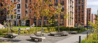 Уже открыто общественное пространство для прогулок, отдыха и встреч жителей: есть игровые площадки, места для отдыха, пешеходные маршруты и велопарковка. На первых этажах домов работают кафе, магазины, аптеки, медицинские центры и пункты выдачи онлайн-магазинов.