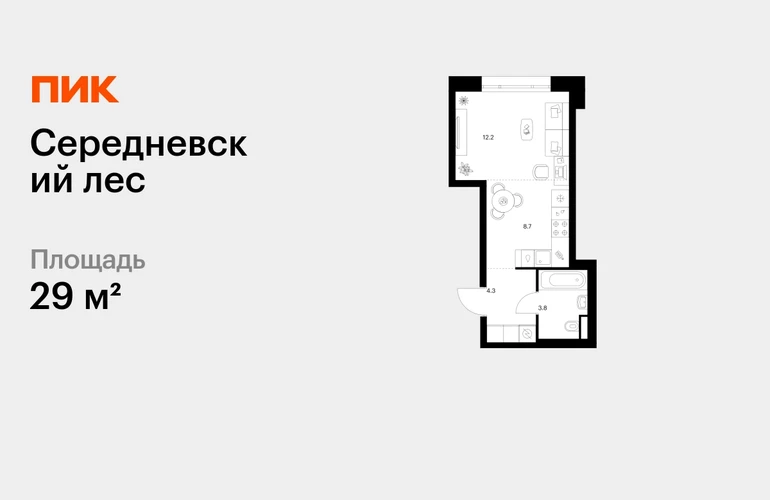 В Новой Москве продаётся студия квартира площадью 29 на 3 этаже 16 этажного дома (корпус, секция) в проекте ПИК «Середневский лес». Удобное расположение: 10–15 минут на автомобиле до станций метро «Аэропорт Внуково» и «Филатов луг». 18 минут на машине до МЦД-4 «Толстопальцево». 5 минут на автомобиле до Киевского шоссе и 18 минут до МКАД. 5 минут пешком до Валуевского леса. Особенности проекта «Середневский лес» — тихий и зелёный квартал в экологичном районе столицы с домами до 16 этажей. Дома в проекте отличаются современной архитектурой: цветовые решения фасадов выдержаны в тёплой гамме, а витражное остекление на входе в подъезды наполняет просторные холлы естественным светом. Преимущества проекта: Отделка: с чистовой отделкой Светлые холлы с двумя входами и быстрыми бесшумными лифтами. Школа на 1100 мест и два детских сада на 665 мест. Общественное пространство с игровыми площадками, местами для отдыха, пешеходными маршрутами и велопарковкой. Наземный паркинг. АртикулО застройщике
