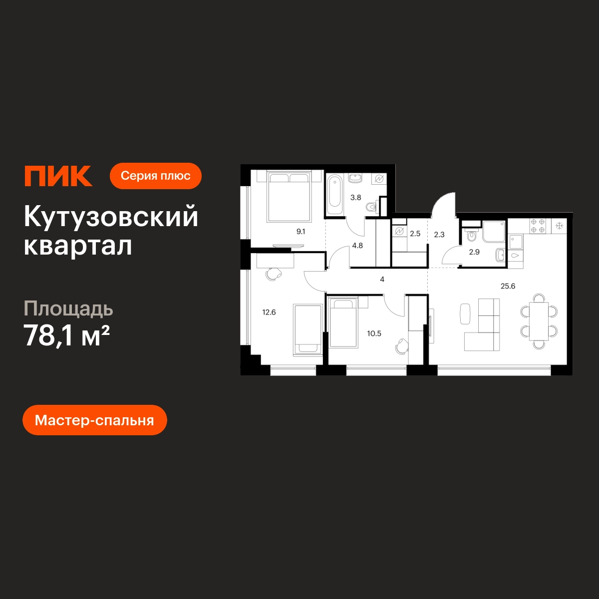 Продаётся 3-комн.квартира площадью 78.10 кв.м на 30 этаже 30 этажного дома (Корпус 3, секция 2) проекта ПИК Кутузовский квартал. Светлый просторный подъезд на уровне земли, функциональная планировка, большие окна, с отделкой. «Кутузовский квартал» строится в престижном и зелёном районе на западе Москвы, в 10 минутах ходьбы от станции метро «Кунцевская». Проект с уникальной архитектурой состоит из двух корпусов высотой 23 и 30 этажей. В «Кутузовском квартале» можно купить квартиру с готовой отделкой, большими окнами в пол, широкими балконами и просторными террасами, угловыми панорамными окнами и видом на две стороны. Престижный район Кунцево, который входит в состав Западного административного округа Москвы, отличается выгодным расположением. Здесь мало промышленных предприятий, зато много парков, где приятно отдохнуть в любое время года Дорога на автомобиле до Кутузовского проспекта, Рублёвского шоссе, Северо-Западной хорды и МКАД займёт не более 15 минут. Благодаря новой магистрали — Северному дублёру Кутузовского проспекта — время в пути до центра сократится до 30 минут. Артикул - 924442О застройщике