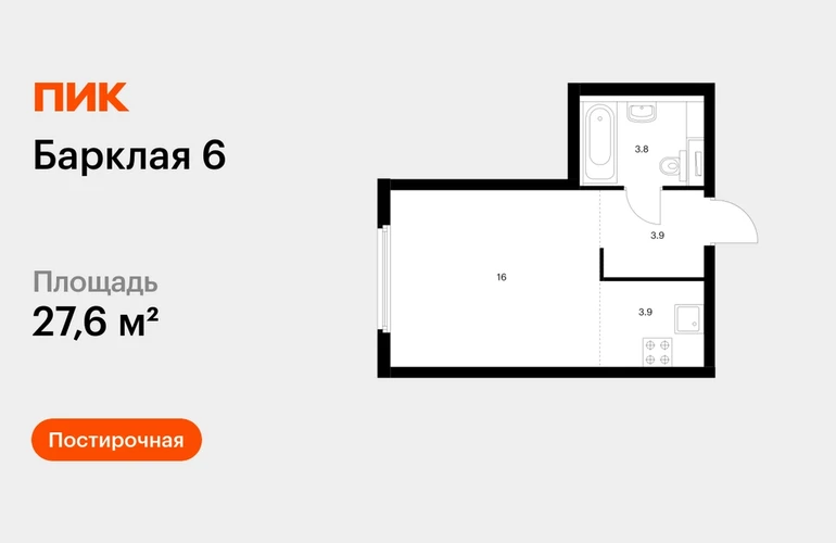 Продаётся квартира-студия площадью 27.60 кв.м на 27 этаже 32 этажного дома (Корпус 6, секция 1) проекта ПИК Барклая 6. Светлый просторный подъезд на уровне земли, функциональная планировка, большие окна, с отделкой. Жилой квартал «Барклая 6» расположен в районе Филёвский Парк, рядом с набережной Москвы-реки и парком «Фили». В 10 минутах пешком находятся станции метро «Парк Победы» и «Фили», до «Багратионовской» можно дойти за 8 минут. На машине через новый путепровод доехать до Кутузовского проспекта получится за 3 минуты, до ТТК — за 10 минут. В уютном проекте «Барклая 6» восемь жилых домов с переменной этажностью — 12, 24 и 32 этажа, подземный паркинг, детский сад на 125 малышей и начальная школа на 225 детей. Внутри квартала появится приватный парк для жителей, где можно гулять, играть на детских и спортивных площадках. На территории парка будет Wi-Fi, в лавочках предусмотрены разъёмы для USB-зарядок. На первых этажах откроются полезные сервисы, магазины и кафе, куда можно будет спуститься за кофе в домашних тапочках. Уникальную архитектуру домов подчеркнёт подсветка фасадов. В светлых лобби, оформленных по индивидуальному дизайн-проекту, предусмотрены удобные зоны ожидания, гостевая туалетная комната и лапомойки для собак, чтобы питомцы попадали в квартиру уже чистыми. На выбор есть разные квартиры — например, есть с мастер-спальней, видом на Поклонную гору и «Москва-Сити». А ещё можно выбрать квартиру с улучшенной готовой или предчистовой отделкой. Район вокруг «Барклая 6» хорошо развит. Здесь много школ и детских садов, работают поликлиники, спортивные школы и дворец водных видов спорта «Фили». Рядом — магазины и торговые центры. В планах города Москвы обновить район рядом с «Барклая 6». Уже расширена улица Барклая и запущен путепровод для прямого и удобного выезда на Кутузовский проспект, а по его дублеру, Проспекту Багратиона, сможете быстро доехать до «Москва-Сити» или МКАД. Изменится «Горбушкин двор»: здесь реконструируют старые здания, построят новые дома, офисы, школы и детские сады. Со временем окружение жилого квартала станет более современным и аккуратным. Артикул - 813133О застройщике